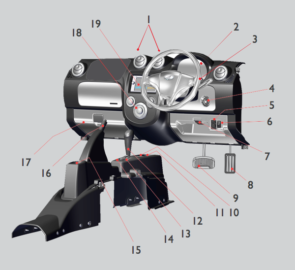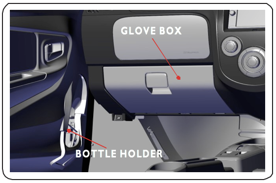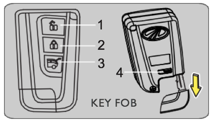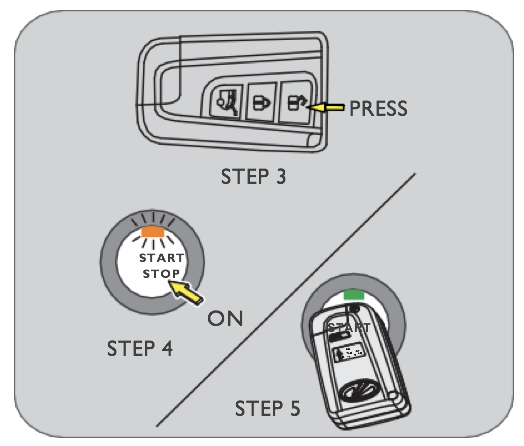 - AUTH KEY- Place the remote key fob near the START switch for authentication.