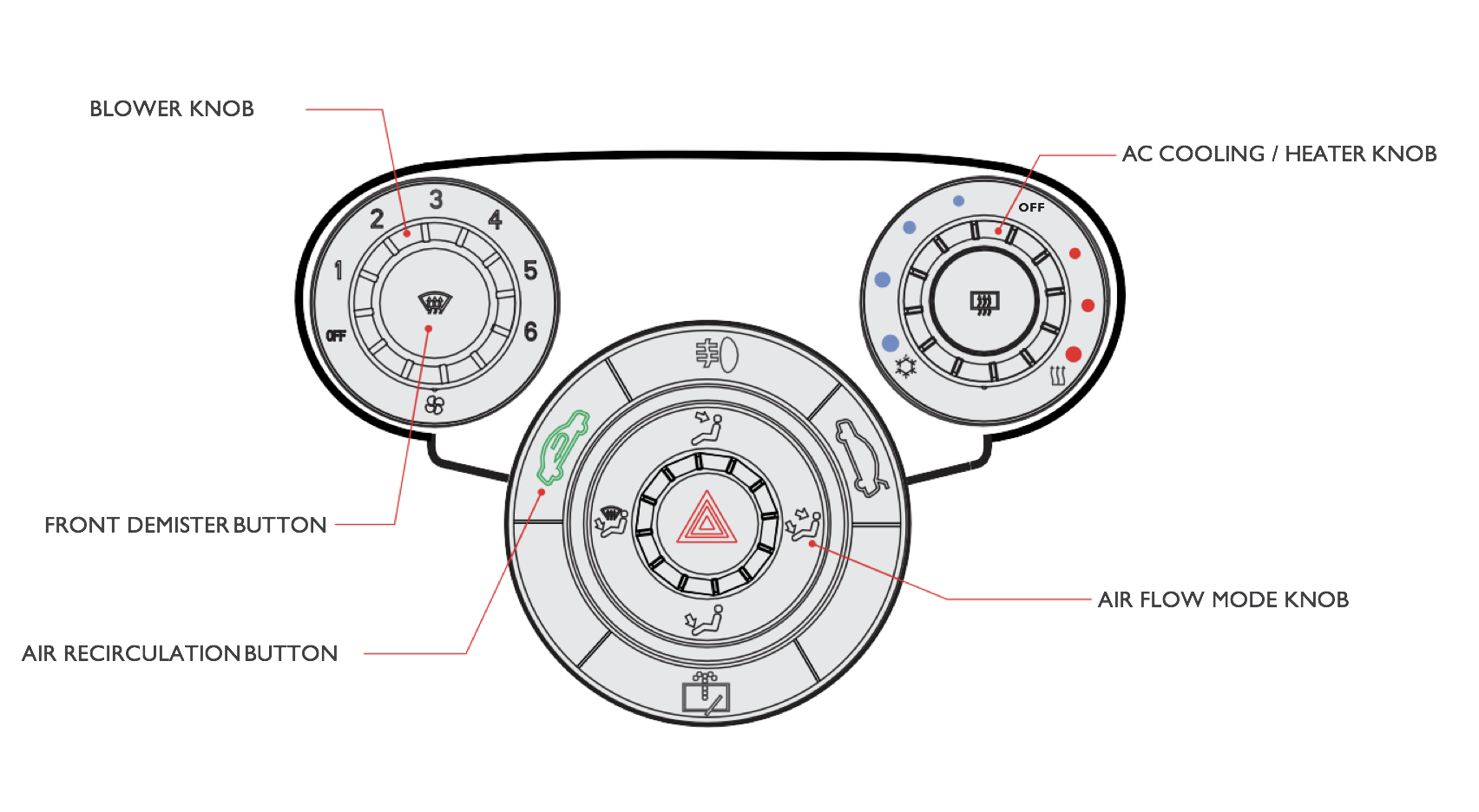 - PWR SAVE- When charge level drops to below 10%, car enters power saving mode and HVAC will turn OFF