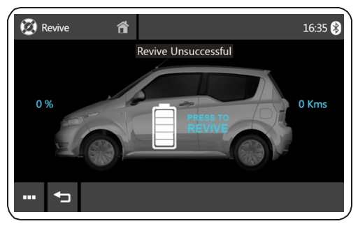 - ACT RVIV- If the charge level drops to 0% SOC, activate Revive via Infotainment system or mobile app.