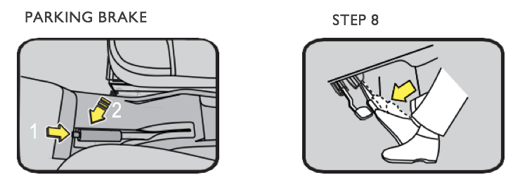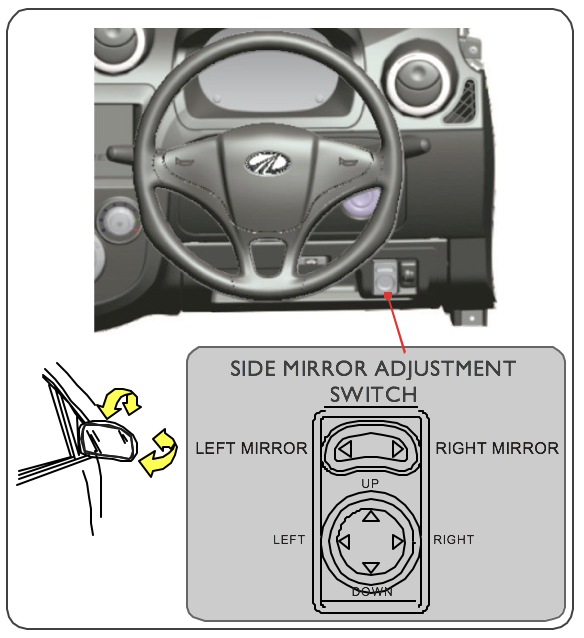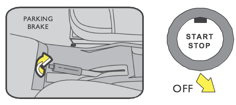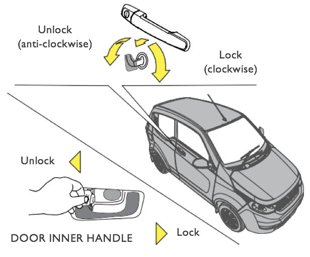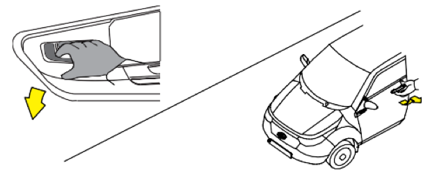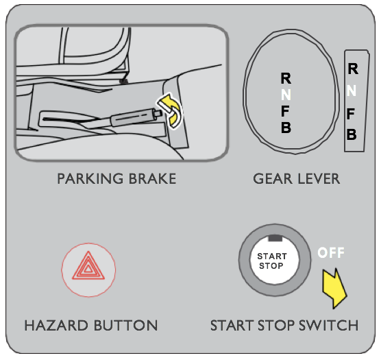 - In case you have forgotten to engage the parking brake after turning off key switch and the door is opened, a warning chime gets activated.