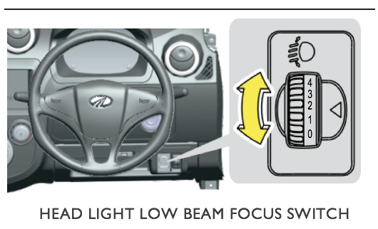Note: Initial inclination detail of head lamp LOW beam is -1% and load is 55 watts with corresponding HLLD switch positions.