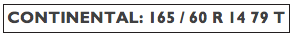 | Tyre (front and rear) | 165 / 60 R 14 / 79T, tubeless |