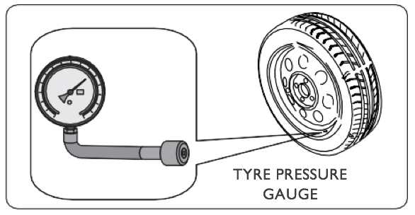 | Tyre pressure- (D+3): driver(D), D+1 or D+2: | Front: 32psi and Rear: 38psi Front and Rear: 32psi |