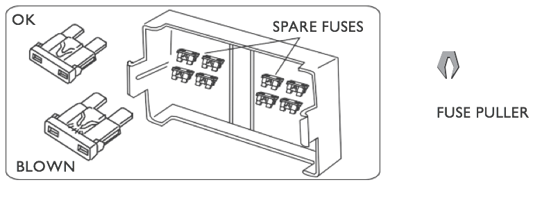 - BRK FLD- Indication to top-up the brake fluid if it is less than the minimum level in the reservoir.