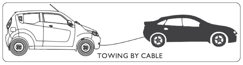- Always maintain a gap of 4 meters between the affected car and the towing vehicle.