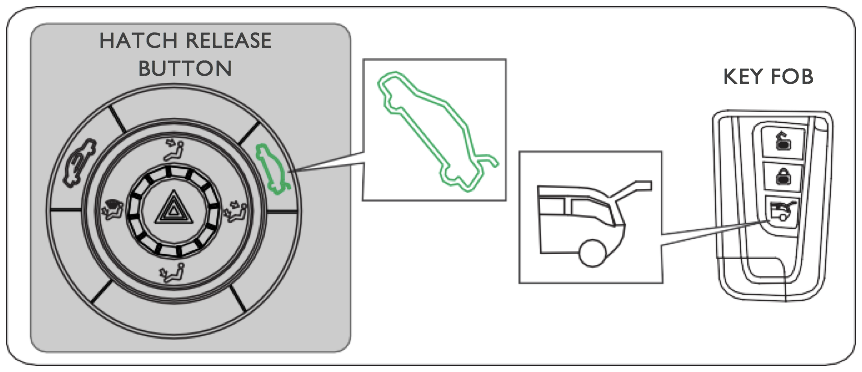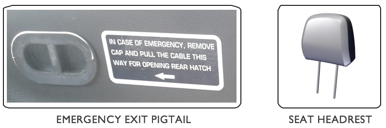 a) In case of an emergency or central door lock failure, use the rear hatch release located on hatch trim panel by removing the grommet and pulling the release cable.b) The seat head rest also can be removed and pointed metal bar is used for breaking car glass to exit from car.