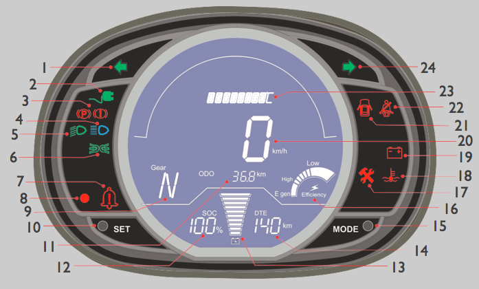 - DRV FALT- In case of a fault in the EV drive system, the car will not move.